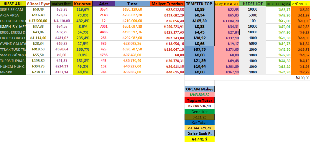 Portföyüm TL bazlı %7 artarken dolar bazlı ise %7 yükseliş gösterdi. Özeti aşağıda paylaşıyorum :