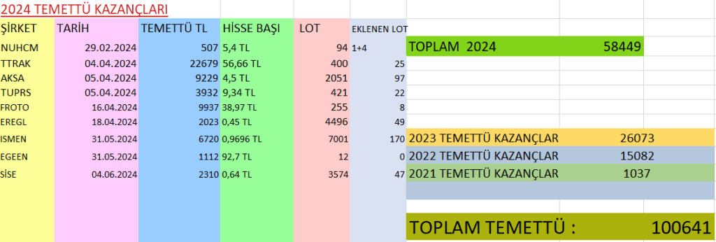 Karşılaştırma yapmak isteyenler için geçen ayın portföy raporu blog linkim :1 HAZİRAN 2024 41. AY PORTFÖY RAPORU.