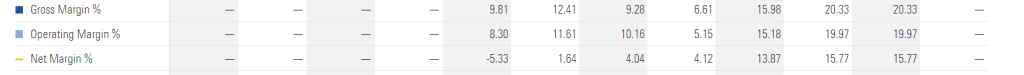 10. Kar marjları da benim için önemli. Burada ise kullandığım site Morningstar. Site İngilizce. Ama Türkçeye çevir seçeneği var. Burada operating performance ‘ta yıllık net kar marjı var. Ayrıca finansal tabloları da biraz daha basitçe inceleyebileceksiniz. Giderek artan bir kar marjı görüyorum şirkette.