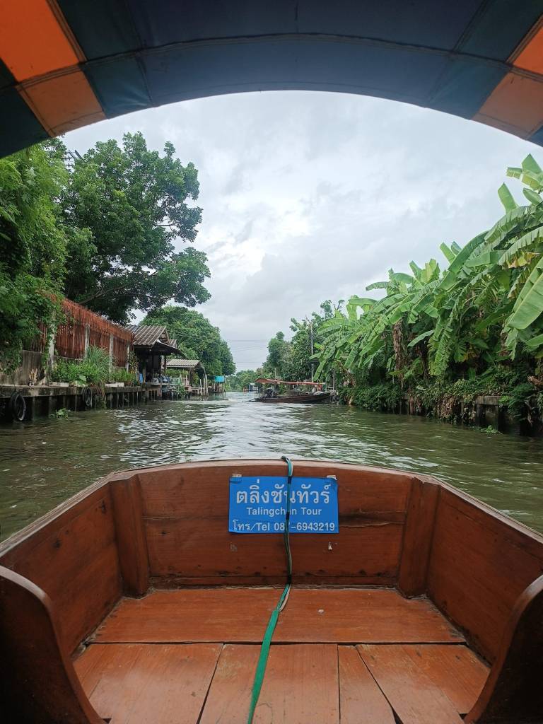 Floating market. ( Yüzen Pazarlar.) Bangkok’un en meşhur aktivitelerinden. Bizde hem daha az turistin olduğu, yerellerin daha fazla olduğu Talin Chun yüzen markete gittik. İlk önce Talin Chun District durağında indik otobüsle. Durağın adını özellikle söylüyorum çünkü yaşadığımız deneyim tamamen buna bağlıydı. Burada indikten sonra fark ediyorsunuz ki burası yüzen market değil. Daha çok küçük bir pazar. Ama iskeleye doğru geldiğinizde oradan küçük botların kalktığını göreceksiniz. Olayın en güzel yanı burada başlıyor. Normal de yüzen markete gidiş geliş 500 baht. Ama biz pazarlıkla 300 bahta anlaştık. Deneyim bence olağanüstüydü. Dar kanallardan ,yerel halkın yaşadığı evleri görüyorsunuz. İnsanlar el sallayıp gülüyor, bu da bizi çok mutlu etmişti.40 dk gidiş. 40 dk dönüş oluyor. Bence en güzel yanı buydu. Yolun sonunda sizi sözde yüzen markete götürüyorlar ama açıkçası çok beğenmedik orayı. Bir de sanırım biraz geç kaldık biz. Çoğu yer kapatıp gitmişti. En güzel yanı giderken gördüklerimizdi. Bangkok ‘un en güzel aktivitesi oldu bizim için.