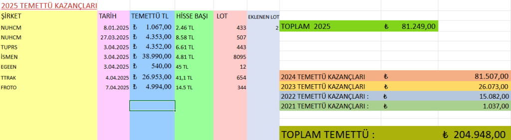 Yılın geri kalanında gelecek “tek tük temettüler” de keyifli sürprizler olacaktır ama esas güzellik, bu ay yaşadığın gibi toplu gelen temettü yağmurlarında saklı. Gelecekte bol bol temettü yağmurlarına yakalanmak dileğiyle..