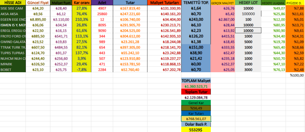 Portföyüm TL bazlı %12 küçülürken , dolar bazlı ise %13,5 küçüldü. Özeti aşağıda paylaşıyorum. Portföyümde ilk defa dolar bazlı bu kadar büyük bir düşüş gözlemliyorum. Gerçekten tarihine not düşülecek zamanlardan geçiyoruz.