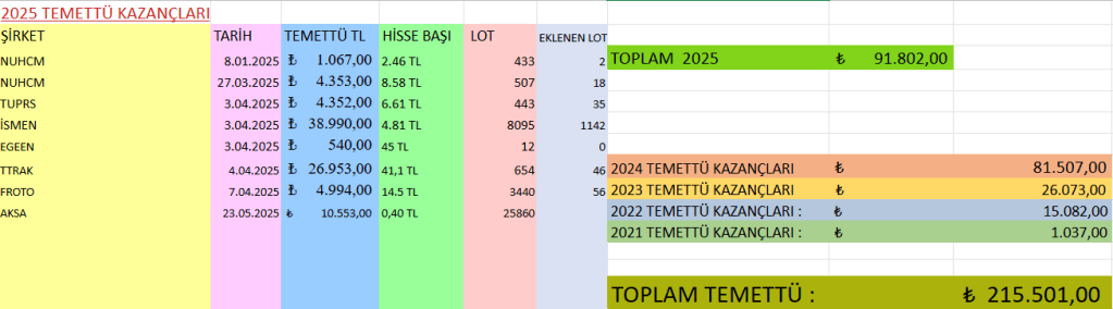 🎯 Hedefim: 130.000 TL (Bakınız : 2025 Hedeflerim).