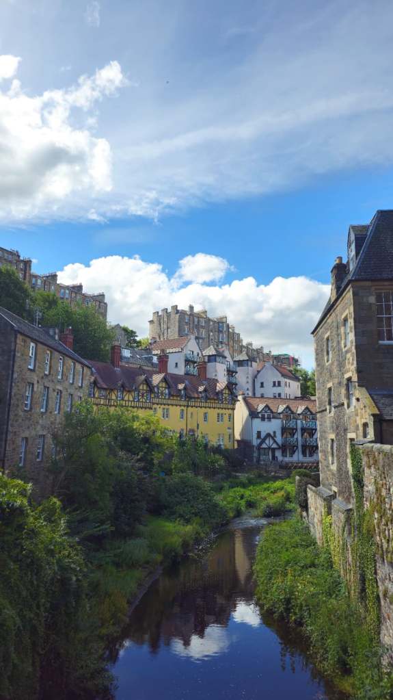 İlk olarak şehrin biraz dışında kalan Dean Village’a gittik. Burası gerçekten huzur dolu, nehir kenarında yer alan kartpostallık bir mahalle. Özellikle soldan yürüyerek ilerlediğinizde hem mimarisiyle hem de doğasıyla göz kamaştırıyor. Water of Leith boyunca yaptığımız yürüyüş, şehre dair ilk izlenimlerimizi çok güzelleştirdi. Derin bir ormanın içinde yürüyormuş hissi veriyor burası.