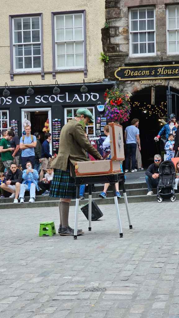 Buradan yürüyerek şehrin en meşhur caddesi olan Royal Mile’a ulaştık. Yaklaşık 2 kilometre uzunluğundaki bu cadde tarihi atmosferi, sokak sanatçıları ve mağazalarıyla çok hareketli. Baştan sona yürüdük ve her adımda tarih kitabında geziyormuşsun gibi bir his veriyor. Royal Mile’ da Harry Potter etkisinden dolayı çok fazla kişi baykuşlarla fotoğraf çekmek istiyor. Ayrıca bu yolda arka planda sürekli Gayda sesi duyacaksınız. Neredeyse hiç durmuyor.