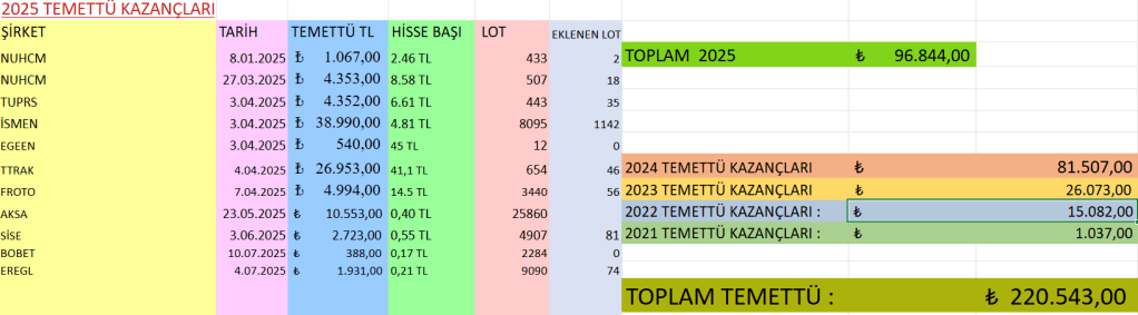 Geçen aydan bu yana temettü açısından değişen bir durum olmadı. Ama gelecek ay Tüpraş temettüleri hesabıma geçecek. Bu aylarda temettü konusunda genelde hareketli aylar oluyor.