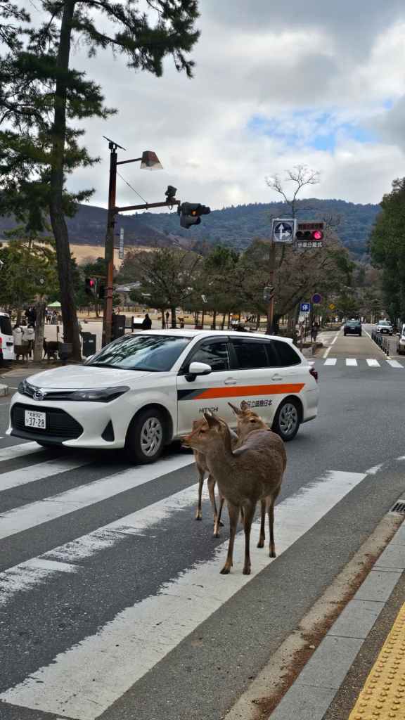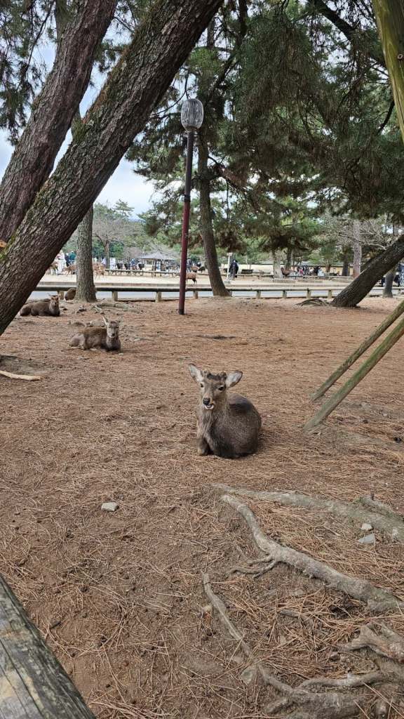 Nara geyikleriyle meşhur. Nara parkın da, etrafında hatta bazen şehir içinde de geyik görmek mümkün. Buradaki geyikler o kadar beslenmiş ki insanlar tarafından, resmen evcilleşmişler. Dokunmana sevmene izin veriyor. Kraker aldığınızı görünce peşini bırakmıyor. Sen kraker verene kadar, seni ısırıyor, etrafını sarıyor, baş tosluyor. O kadar alışmışlar düşünün. Parkın başı baya kalabalık oluyor. Yüzlerce geyik, yüzlerce insan. O yüzden Toda iji tapınağına doğru yürürseniz ilerledikçe geyik ve insan sayısı azalacak, geyikleri istediğiniz gibi sevebilecek, yem verebilecekseniz. Üstüne Toda İji tapınağını da göreceksiniz.