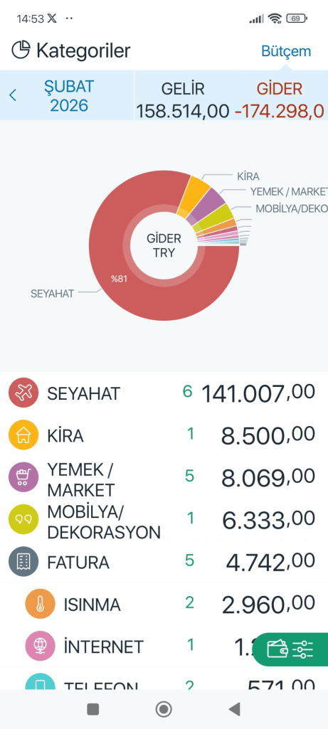 Japonya seyahat harcamalarımızın neredeyse hepsi bu aya yansıdı. Kazandığımızdan fazla harcadığımız bir ay oldu. Tabi ki tablo da görebileceğiniz üzere bunun en büyük sebebi yine seyahat harcamaları. Neyse ki önümüzdeki aylarda seyahat harcamaları azalıyor. Lakin yaz için yine bir yurtdışı seyahati planlıyorum. Yine büyük ihtimalle Asya olacak. Sağolsun Avrupa vize vermiyor. Bende artık uğraşmıyorum açıkçası. Bu kadar net bir şekilde vize alınamıyorsa zorlamanın benim için bir manası kalmadı.