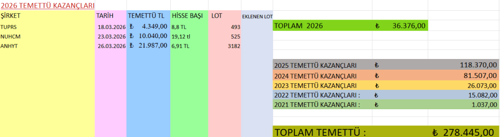 Temettü tablomun ilk temettüleri de böylelikle işlenmiş oldu. İnce ince işliyorum her yıl temettüleri.