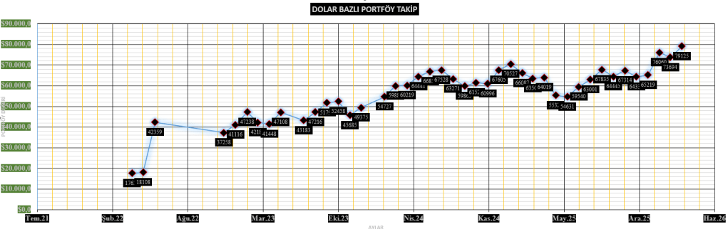 Dolar bazlı rekor düzeye geldik yeniden. 79.125 dolara yükseldi. Ama bundan en büyük etken bu ay yaptığım eklemeler oldu. Eklemeler olmadan portföyüm bu ay neredeyse yerinde saydı aslında.